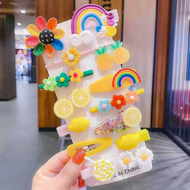 14 Pcs/set Cute Child Barrettes Kid Hairgrips Hair Clip Accessories Gift Set Girl Cartoon Pattern Hair Clip Set