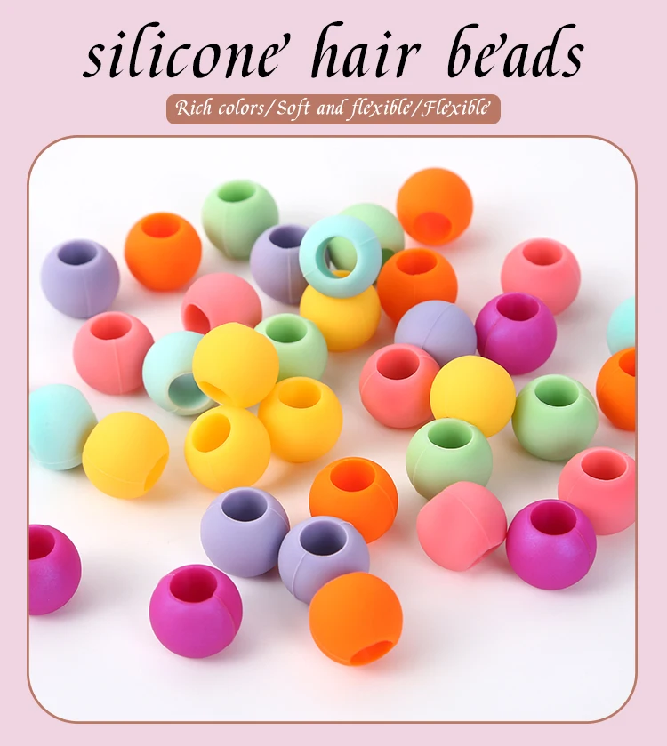 Colorful Hair Beads Kit Soft Silicone Rubber Hair Beads Braiding Hair Accessories Extention for Girls