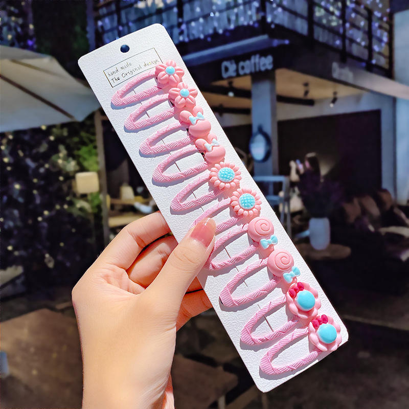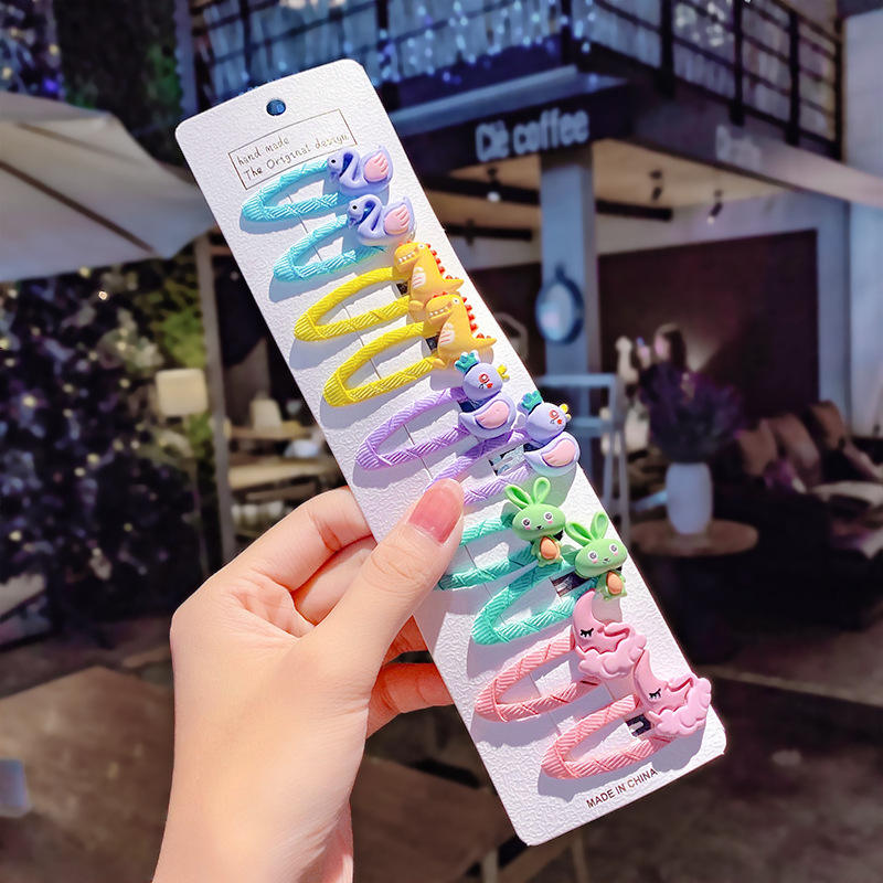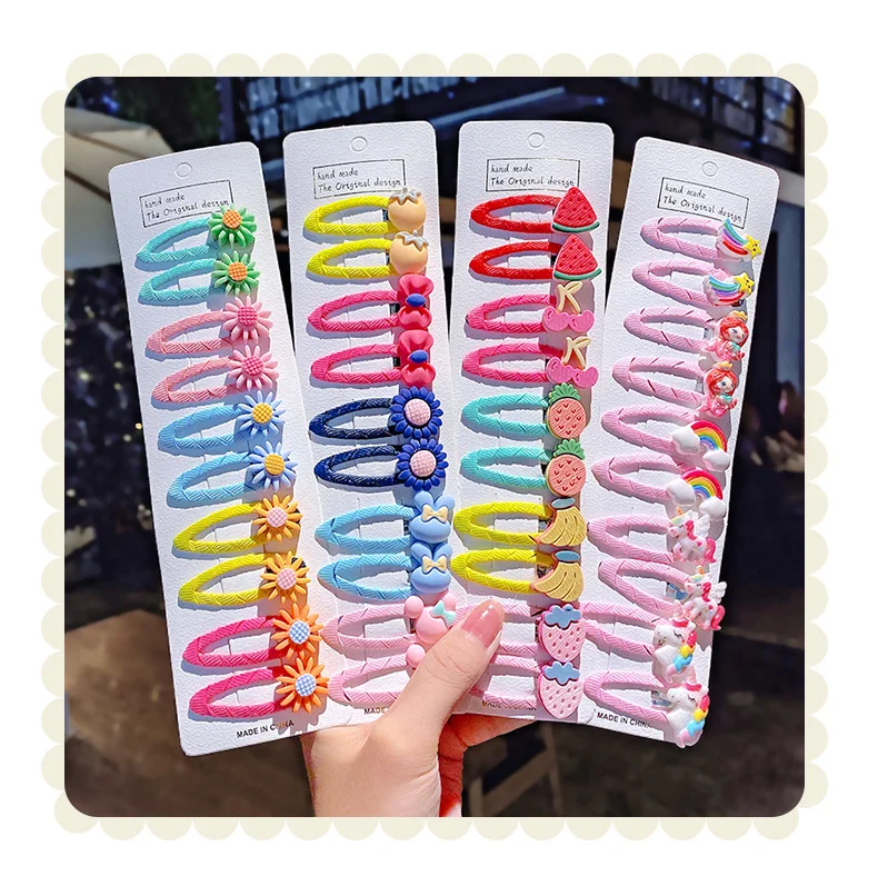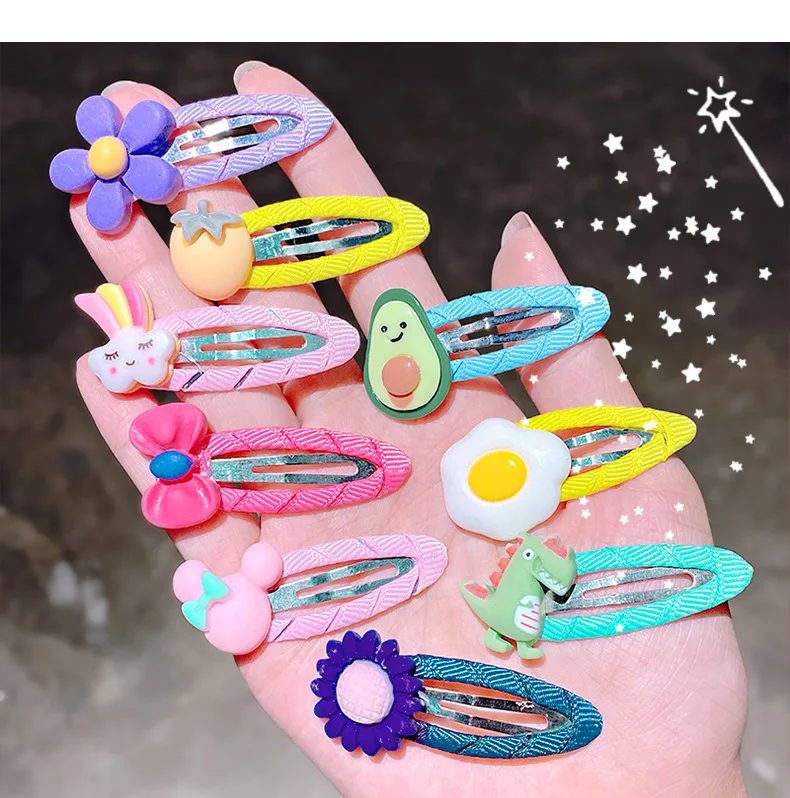 Cute Candy Color Cartoon Design Hair Pins 10 Pcs No Slip Snap Barrettes for Kids and Teens Girls Made of Resin