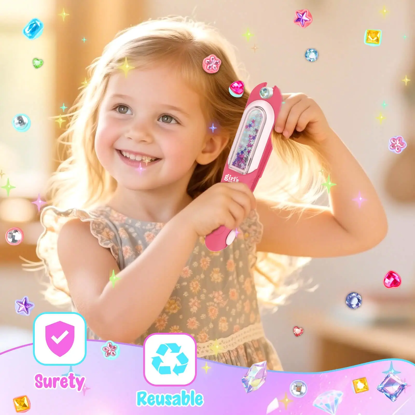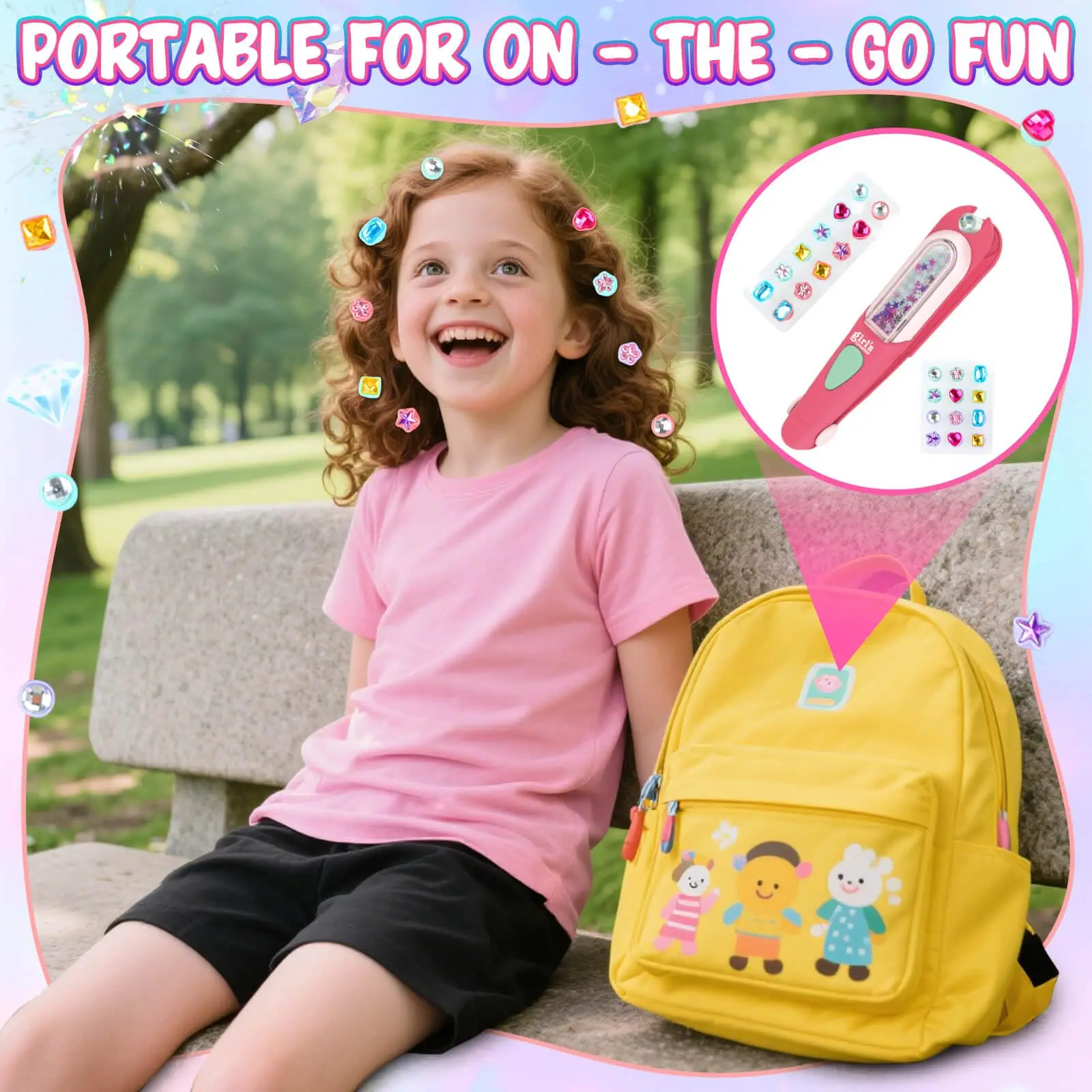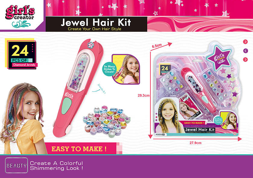 EPT DIY Jewel Hair Kit Decoration Pretend Toy Kids Makeup Kit Set for Girls Hair Gem Stamper Kit