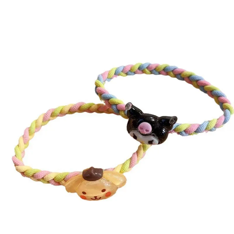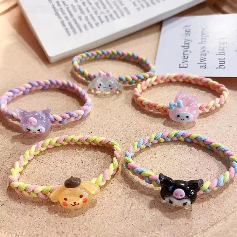 Name: H00014 Wholesale Cute Anime Kuromi Cinnamoroll Hair Ties Nylon Elastic Resin Hair Bands for Girls Kids Cartoon Hair Accessories